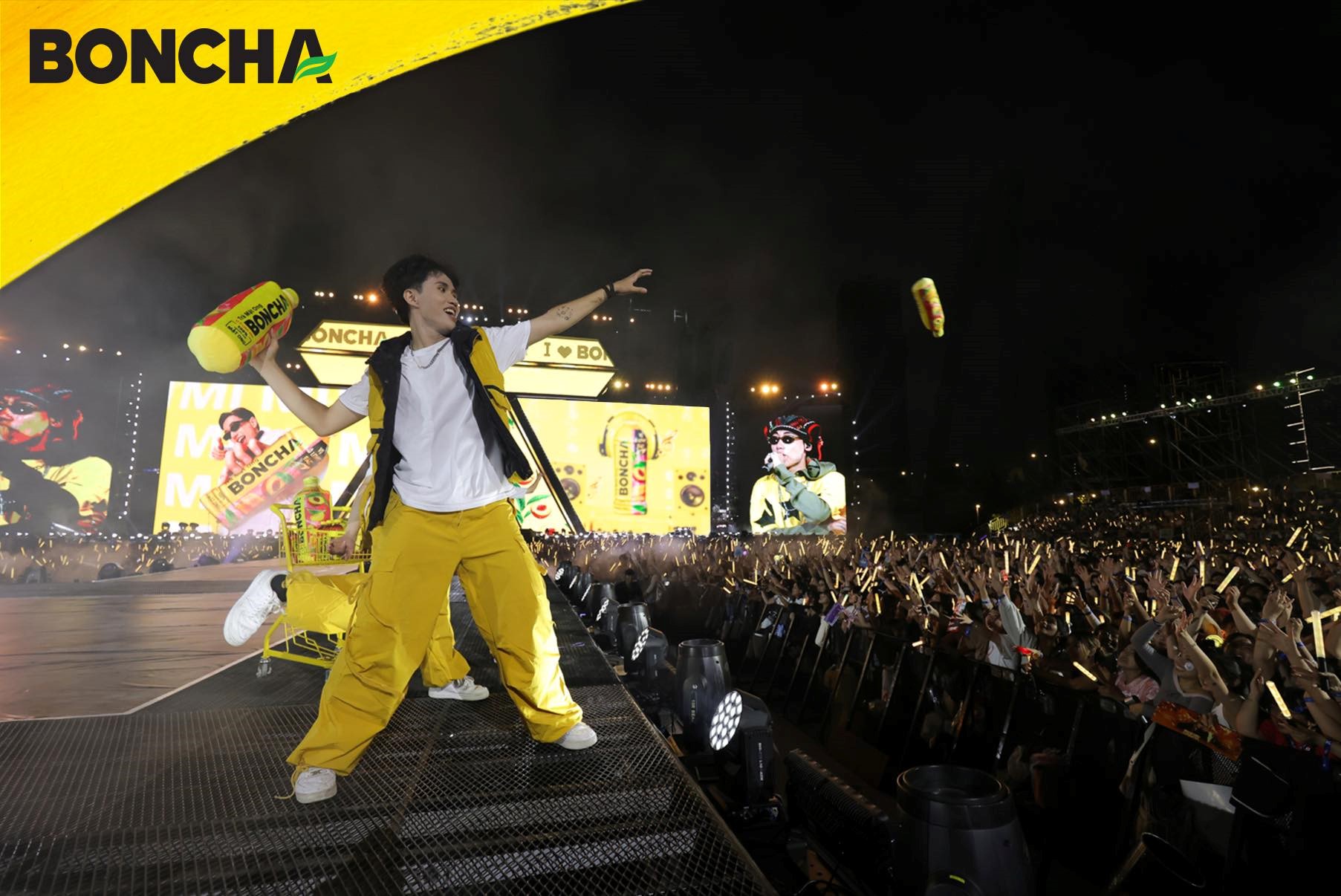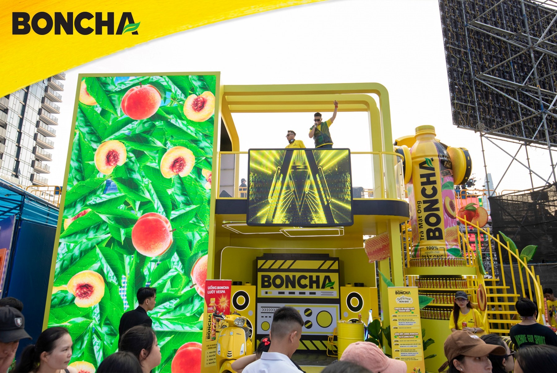 Điểm nhấn: Booth hoạt động 2 tầng và chai BONCHA khổng lồ, Màn trình diễn sân khấu của Double 2T và BONCHA.